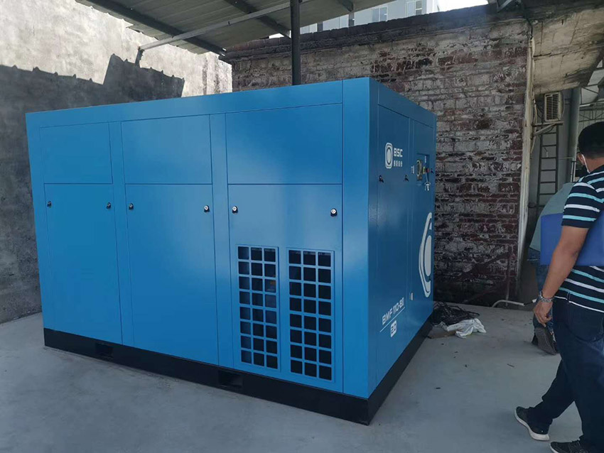 2.在收到客戶的空壓機需求后,廣州中天立即安排工作人員到現(xiàn)場視察情況,了解到佛山華龍公司平時使用空壓機時,用氣有點波動,而原來110KW,20m3/min的空壓設(shè)備剛好夠用。但是,當用氣大時,如果其他地方用氣,會造成氣不穩(wěn)或氣壓不夠,從而影響產(chǎn)品成型。